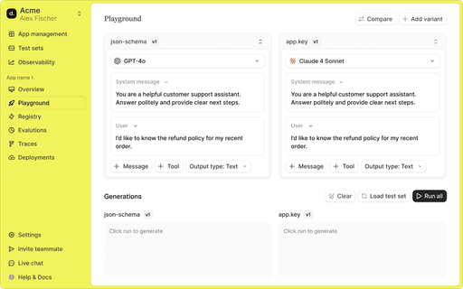Empower product managers and experts to run evaluations and compare experiments, directly from the UI.