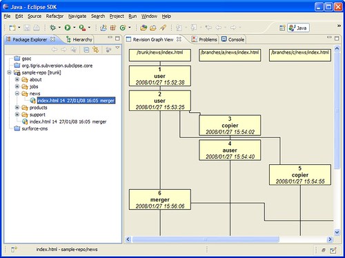 - The second reason is the most important one. There is no way to ask SVN for the whole revision history of a file. I mean, its history and the history of its branches. If you ask for /trunk/Foo.java, SVN won’t tell you anything about its branches. If you ask for /branches/2.x/Foo.java SVN won’t tell you anything about other branches or changes in /trunk/Foo.java since the 2.x branch was created.