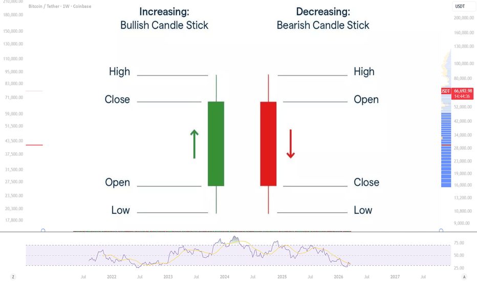 🟩 A green candle forms when the close is above the open