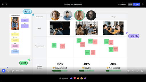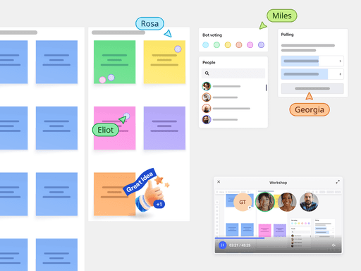 Auta tiimejä keräämään reaaliaikaista palautetta järjestämällä kiinnostavia työpajoja. Sisäänrakennetun Talktrackin ansiosta asynkroninen yhteistyö on helppoa napsautettavilla videoilla, jotka siirtyvät suoraan tauluille.