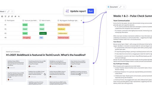 Utiliza Compañeros de IA para agrupar respuestas, crear resúmenes o generar informes compartibles.