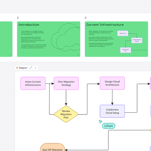 Aleja el zoom de las diapositivas al lienzo más amplio para explorar el contexto y las ideas adyacentes.