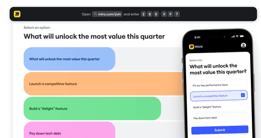 Convierte tus talleres y presentaciones en experiencias memorables. Guía a la sala, haz que todos participen desde cualquier dispositivo y conecta cada visión directamente con el trabajo.