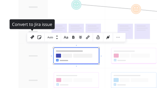 Maak taak-cards met toewijzingen en vervaldatums rechtstreeks in journey-visualisaties. Synchroniseer ze met Kanban-weergaven en -systemen zoals Jira en Azure DevOps.
