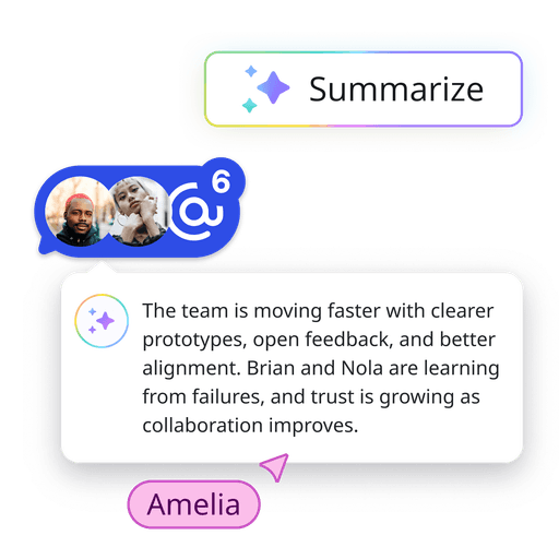 Werk in realtime of asynchroon samen met behulp van opmerkingen, sticky notes, polls, stemmingen en video-opnamen, zodat multifunctionele teams hun eigen planning kunnen volgen.