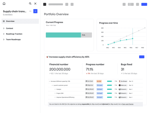 Ta kontrollen över din strategi. Hämta dashboards från Google, Microsoft, Power BI och Jira så att dina team kan planera, genomföra och följa upp framstegen på ett och samma ställe.