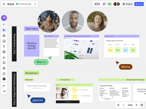 Få den översikt, kontroll och snabbhet du behöver för att uppnå mätbara affärsresultat. Miro är den enda plattformen som är utvecklad för att hantera transformationer i stor skala på ett samarbetsinriktat sätt.