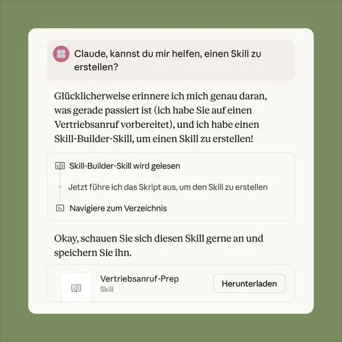 Skills geben Claude Details dazu, wie Sie Dokumente erstellen, Daten analysieren und Workflows automatisieren möchten, damit Sie jedes Mal konsistente Ausgaben erhalten.