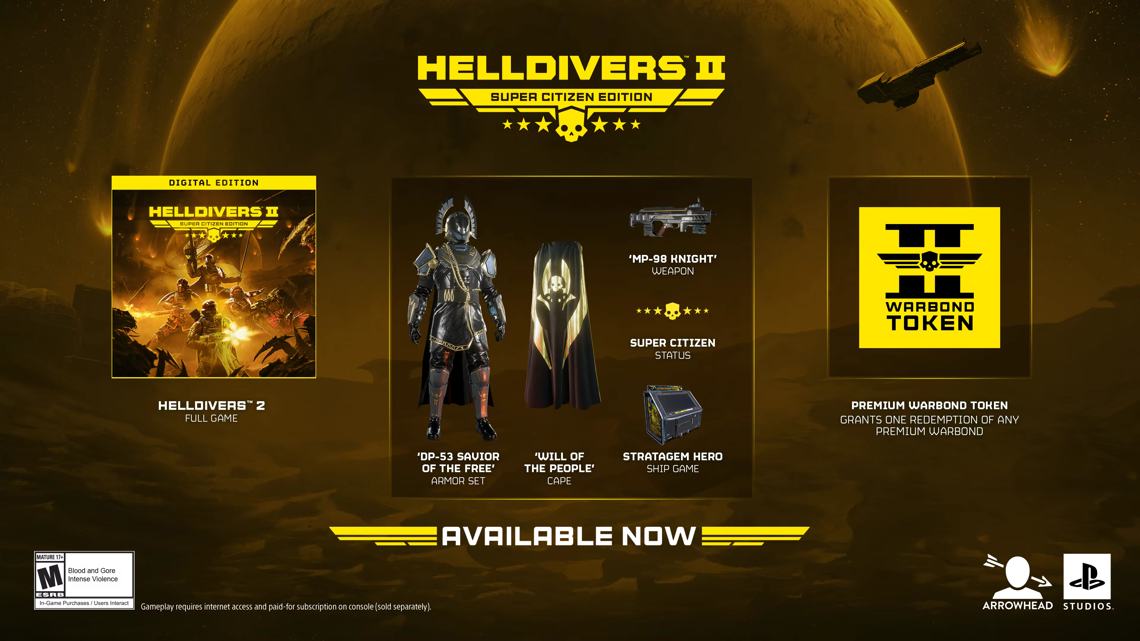 Includes 2 items: HELLDIVERS™ 2, HELLDIVERS™ 2 - Upgrade to Super Citizen Edition