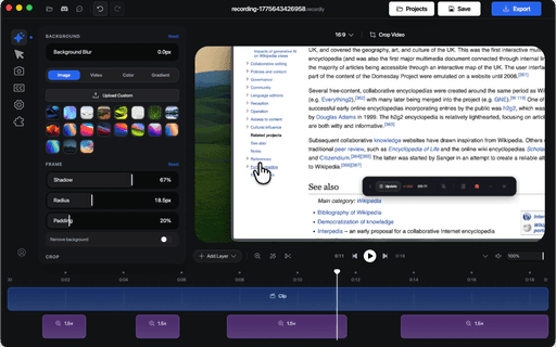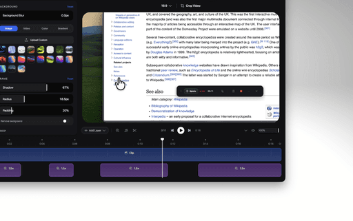 Recordly adds beautiful cursor animations and auto-zooming plus a background to your recordings so you can spend less time editing and more time shipping.