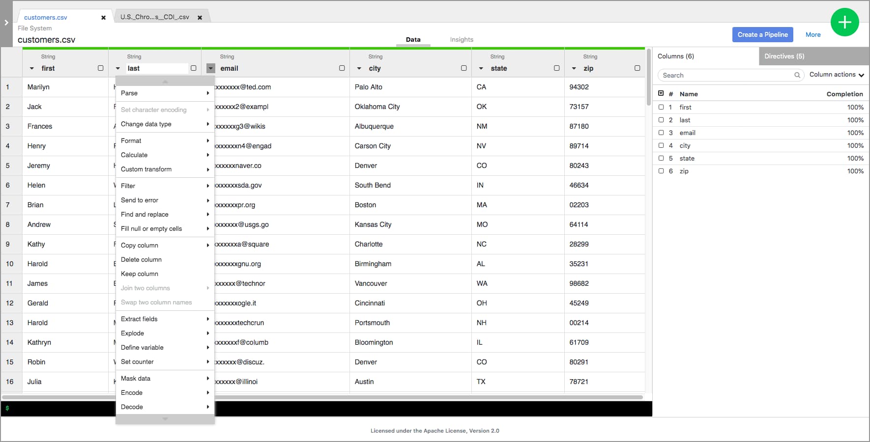Wrangler allows you to visually and interactively cleanse and prepare raw data, with the aim of making it consumable for further processing. It provides a standardized UI driven interactive flow that takes the pain out of preprocessing tasks for data engineering, data science and data analysis. Learn More