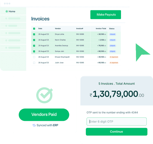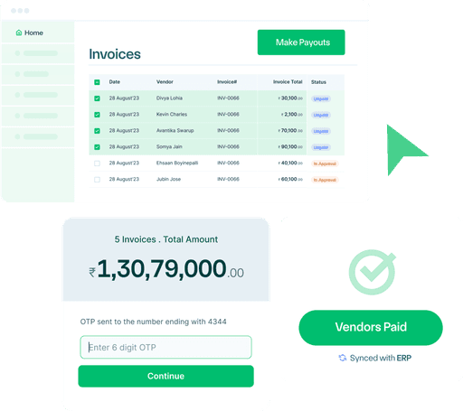 Power bulk payments effortlessly with our native payouts engine- just a single OTP to get it done.