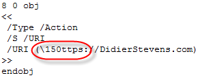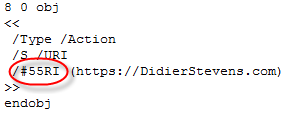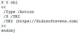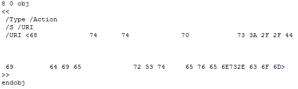 This is the same type of object used in the malicious mailto PDF files.
