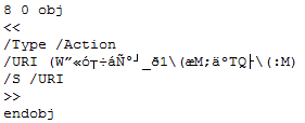 An action must be triggered by an event, examples of such triggers are the association of an action to the display of a page or the opening of the PDF document. We will use the OpenAction to trigger our URI action object each time our test PDF document is opened: