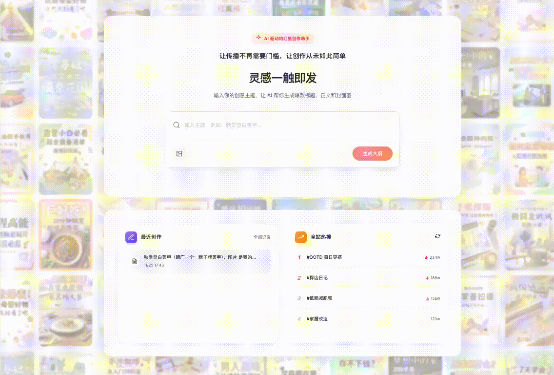于是就有了这个项目。一句话一张图片生成小红书图文