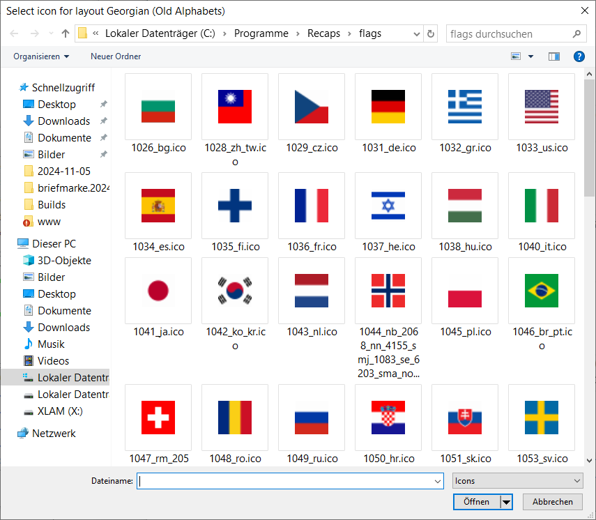If the installation contains no country flag for your layout - tell us, and we add it to the next version of the program. You can also assign any icon in format 32 x 32 pixels True Colors to the layout. Other formats and sizes are supported too, but may be affected by conversion artifacts, especially on grayed images for disabled layouts.